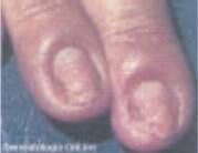Diabete: Unhas avermelhadas e com vasos na pele, micose mais freqüente engrossamento e endurecimento das pontas dos dedos.