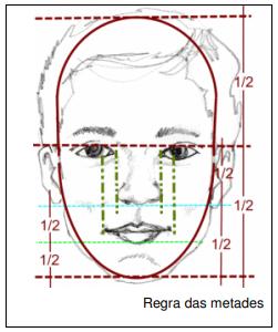 Segundo Gouveia (2010), o rosto humano está dividido em partes e proporções que nos permitem construir as feições, ele criou assim a regra das metades como vimos a seguir: