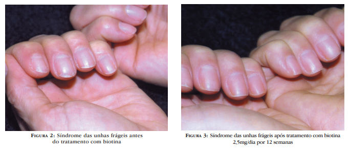 Os autores recomendam que a biotina (2,5mg/dia) seja usada nos casos de SUF por períodos que variam entre seis e 12 meses (Figuras 2 e 3), o que de acordo com alguns estudos leva à melhora do quadro em até 67% dos casos. Vários outros tratamentos para SUF foram tentados, incluindo a aplicação local de vitamina C, piridoxina, cálcio, vitamina D e gelatina, além do uso oral de ferro, piridoxina e ácido ascórbico. Contudo, nenhuma dessas terapêuticas demonstrou melhora clínica que justificasse seu uso amplo.