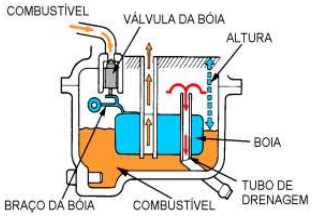 Quando o nível da cuba baixar, a válvula da bóia abre, permitindo novamente a entrada de combustível até o nível especificado. Deste modo,consegue-se manter constante o nível de combustível na cuba do carburador.