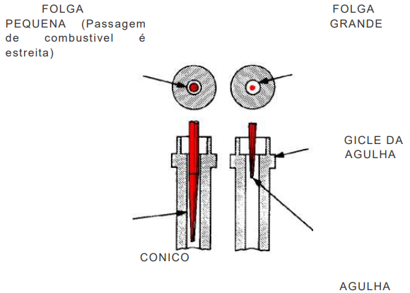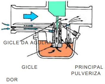 O tamanho do giclê principal não afeta a relação da mistura de ar/combustível neste estágio, uma vez que a capacidade de vazão no giclê principal é maior do que no giclê de agulha.