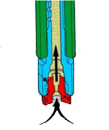 Com um grau de abertura de 1/4 - 3/4, o combustível aspirado é regulado pela seção cônica da agulha do giclê. A área seccional entre a agulha e o giclê da agulha aumenta a medida que o pistonete abre e a agulha cônica sobe. O volume de combustível aumenta a medida que a área seccional aumenta.
