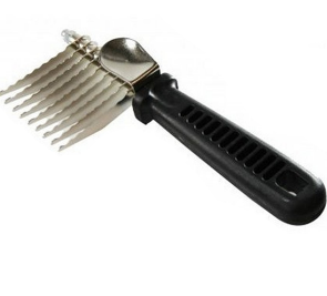 Removedores de Sub pelo:Rake ou removedor de sub pelo remove todos os sub pe los dos cães e gatos sem machucar. Essa potente ferramenta é indispensável aos tosa dores e groomers. Suas lâminas afiadas cortam os sub pelos arrancando-os sem machucar o animal.