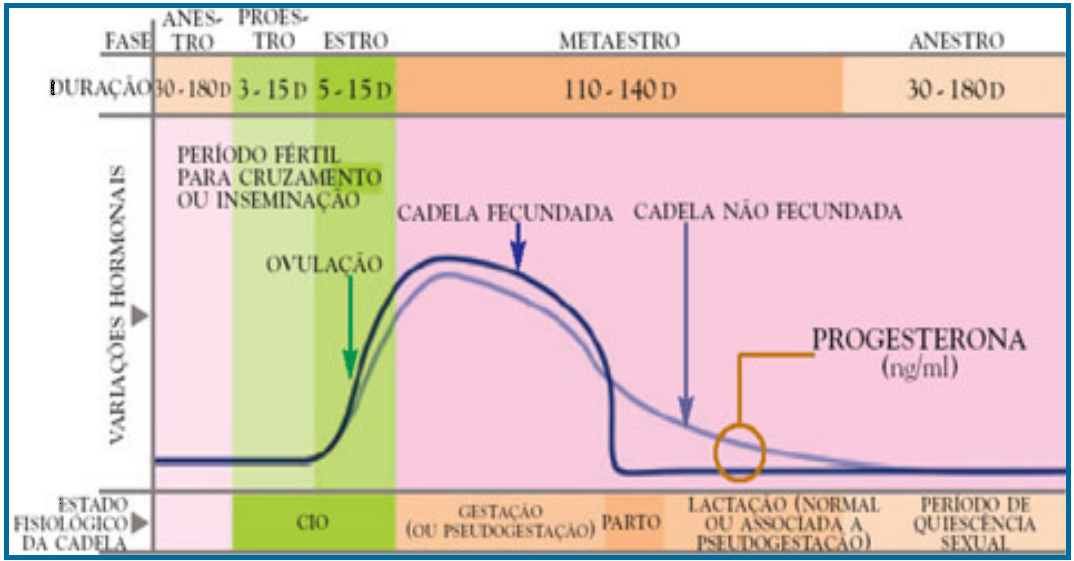 • involução do corpo lúteo, o qual secreta progesterona que é indispensável à cadela durante toda a gestação.