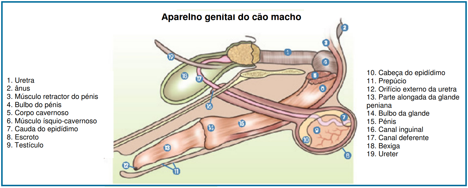 O posicionamento definitivo dos testículos nas bolsas escrotais só é adquirida aos 6 meses de idade, mas por vezes os testículos podem voltar a subir temporariamente durante este período para o canal inguinal quando são expostos ao frio ou quando o cachorro está em decúbito dorsal. O Médico Veterinário deve pesquisar sistematicamente esta anomalia durante a primeira consulta do cachorro para poder redigir precocemente um certificado de suspeita, caso esta não tenha sido notificada no certificado de aquisição do cachorro. A ectopia testicular é encontrada com bastante frequência na espécie canina.