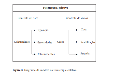 Enquanto a fisioterapia reabilitadora concentra sua atuação, quase que exclusivamente, no controle de danos, seja buscando a cura de determinadas doenças que restringem a locomoção humana, seja reabilitando sequelados de patologias diversas ou desenvolvendo a capacidade residual funcional de indivíduos que tiveram lesões irreparáveis de determinadas funções, a fisioterapia coletiva possibilita e incentiva a atuação também no controle de risco, ou seja, no controle de fatores que potencialmente podem contribuir para o desenvolvimento da doença.