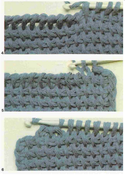 Observação: repita como for necessário para fazer o seu ponto tunisiano de crochê. Você deve ir alternando os pontos de ida e de volta, faça isso entre as carreiras de ida e volta. A carreira termina quando você chega naquela de volta, alcançando todos os pontos que são simples ou até o seu trabalho está completamente feito.