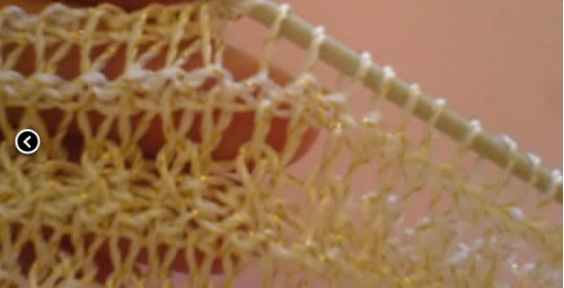 d- Quando chegar ao fim de passo de ponto tunisiano é hora de fazer duas laçadas na agulha.