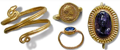As bijuterias começaram a ser feitas na antiguidade como amuletos de origem religiosa. Muito fortes na história egípcia, grega e romana, eram comumente usados como para proteção pessoal: medalhas, escapulários, cruzes, pulseiras com imagens de santos, etc. O uso de materiais nobres fazia distinção social econômica, mas o uso de diferentes tipos de adornos feitos com materiais menos nobres tornou-se bastante comum.