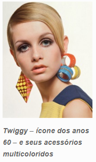 Os anos 40, 50 e 60 viveram uma grande explosão de juventude em todos os aspectos. A grande evidência a nível de moda e acessórios foi sem dúvida nenhuma a modelo Twiggy com seus brincos grandes e coloridos.