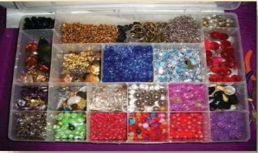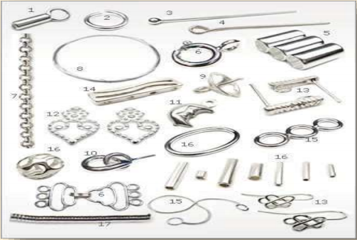 Contas, elos e canutilhos: peças de metal, ou sintéticos de tamanho e cores variados, pedras etc., que são usados em praticamente todas