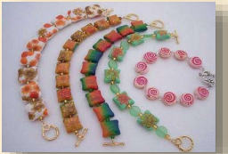 Pulseiras e colares feitos com contas de biscuit