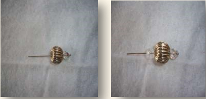 Após colocar a tulipa no alfinete, coloque a conta e com o alicate de ponta redonda, faça o elo.