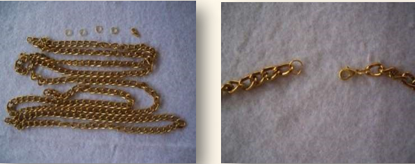 Variação: use correntes de cores e formatos diferentes.Neste caso, há necessidade de fazer mais quantidades de voltas e de usar uma argola maior.
