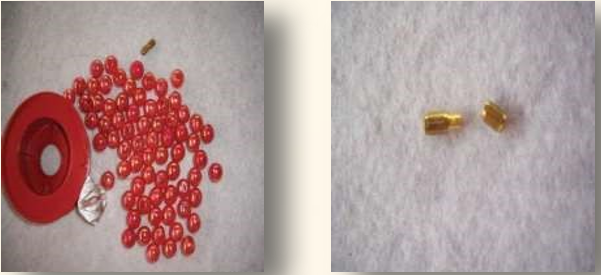 Material: duas contas em forma de gotas peroladas; duas tulipas pequenas; duas argolas douradas; duas bases para brincos, também conhecidos como pinos; duas tarraxas, neste caso, sutiã para orelhas; dois alfinetes dourados.