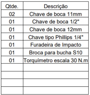 - UNC 5/16” x 2.3/8”; - Usar o conjunto montado como gabarito para marcar as furações;
