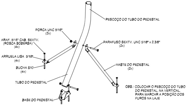 - Montar no trecho mais longo do tubo do pedestal a base do pedestal, utilizando parafuso sextavado