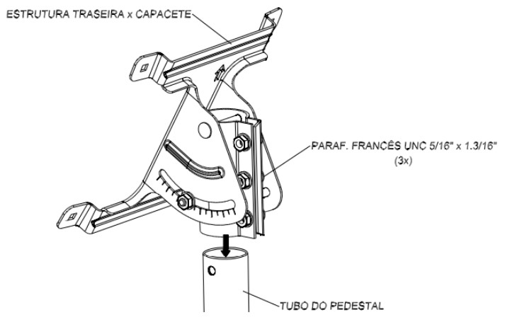 - Montar o conjunto estrutura traseira x capacete sobre o tubo do pedestal, até que o