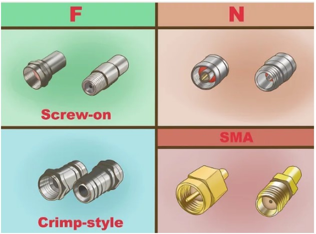 - Existem vários tipos de conectores tipo F RG-6, os principais são os de friso e os de rosca.