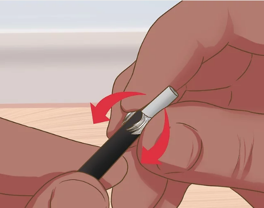 2.Raspe a proteção externa (geralmente de borracha isolante) em cerca de 1,5 cm