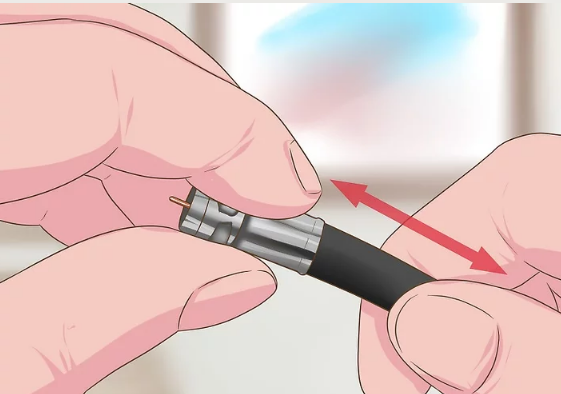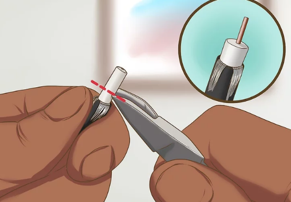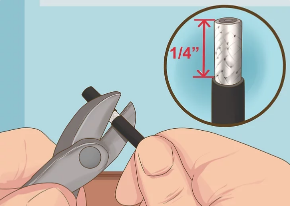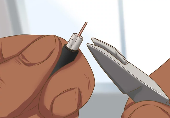 O primeiro passo para anexar seu próprio conector é preparar a ponta do cabo coaxial .