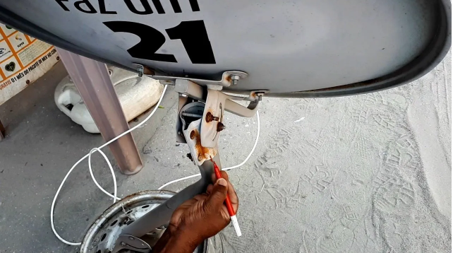 Ainda você pode estar usando uma antena velha e essas marcações saíram, então basta fazer uso de um transferidor escolar, primeiro você posiciona o azimut com o transferidor no solo e depois os graus de inclinação com o transferidor na longarina.