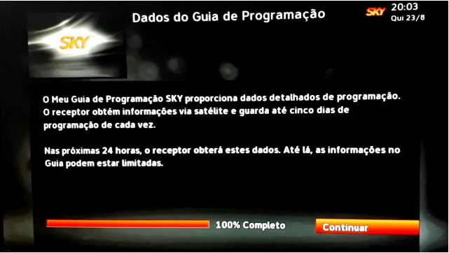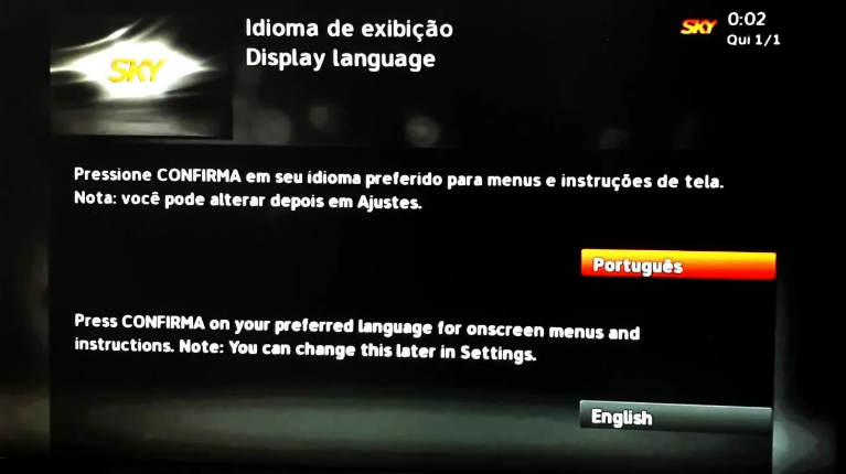 Ligue o receptor SKY e uma TV próximo a antena que vai utilizar. Com todo o equipamento ligado, selecione o idioma e pressione a tecla "Confirma" do controle em Português ).