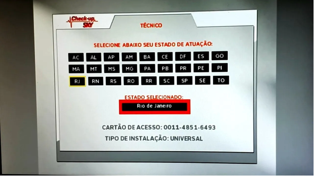 Continue pressionando a tecla 'Confirma" em Continuar até chegar na tela abaixo.Selecione o seu estado e Confirme em Continuar.