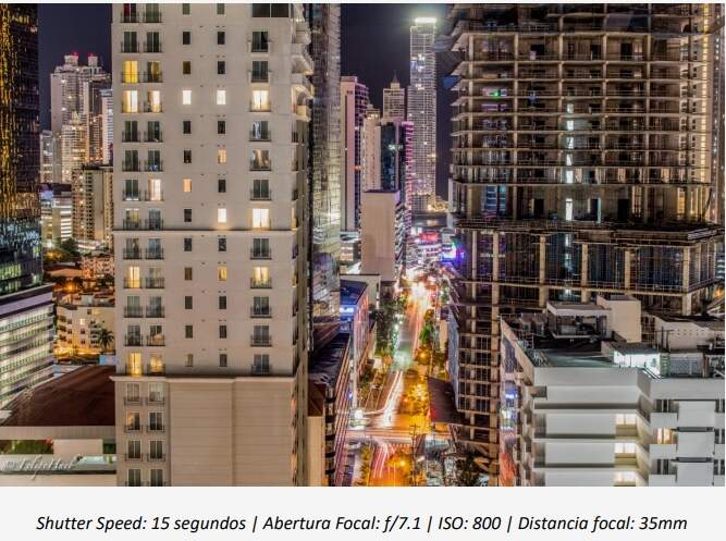 Para fotografias noturnas, como não temos quase nada de luz, devemos abrir por mais tempo o obturador, de forma a absorve-la de forma satisfatória. Nesta fotografia acima, o Shutter Speed foi de 15 segundos, registrando toda a luz do movimento dos veículos. Para esse tipo de fotografia, é indispensável o uso de um tripé e um disparador. Se não tivesse utilizado essas duas ferramentas, as partes fixas da fotografia, como os prédios, iriam sair borrados. A abertura focal foi de f/7.1, suficiente para uma boa profundidade de campo e equilíbrio de luz satisfatório. A lente utilizada foi uma EFS 18-135, com a distância focal em 35mm.