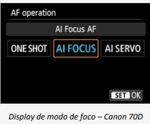 AF-A ou Al Focus AF: Este é um modo hibrido de foco automático. Se a câmera detecta que o objeto está parado, o modo do foco vai automaticamente para o AF-S(Single). Se o objeto se mover, o modo de foco muda automaticamente para o Al Servo (Contínuo).