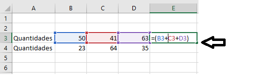 E observe que, após copiar a função, a célula que a recebeu automaticamente revela seu resultado. Veja que a função foi modificada alterando a nomenclatura das células de origem da soma.