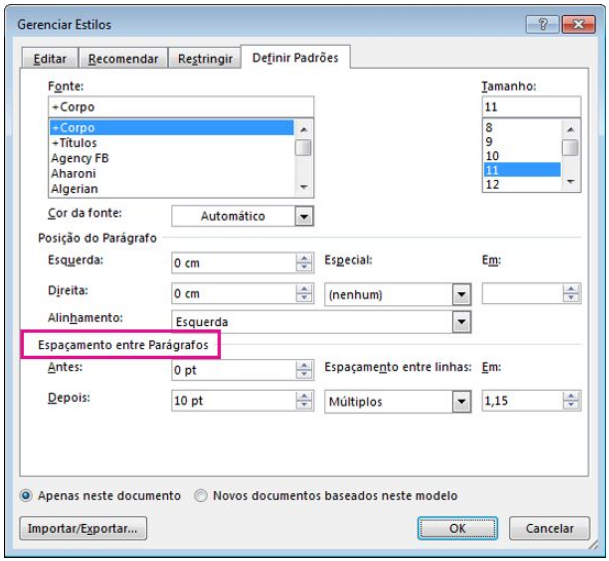 2 Alterando o espaçamento entre parágrafos