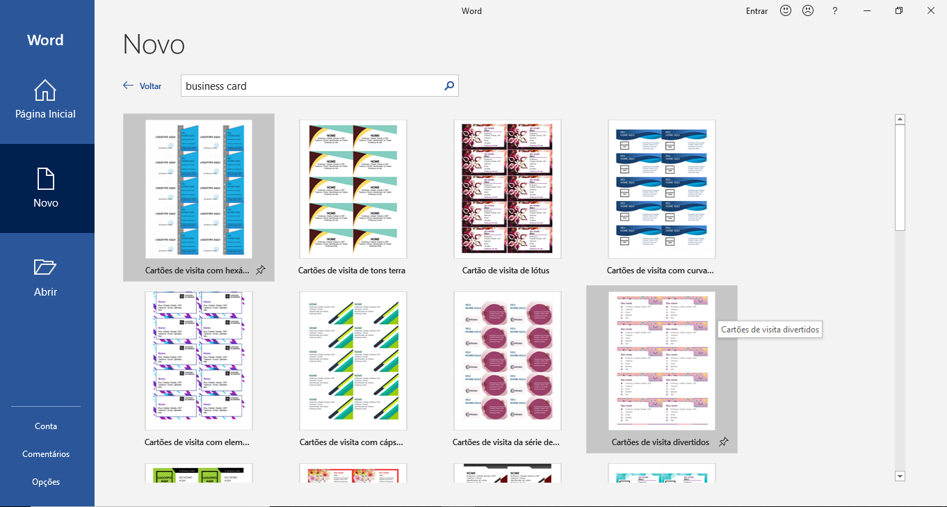 Criando cartões de visita no Word a partir de um modelo