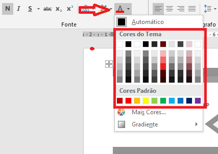 4. Você pode selecionar o texto e clicar na indicação de letra A sublinhada para escolher uma nova cor para a fonte;