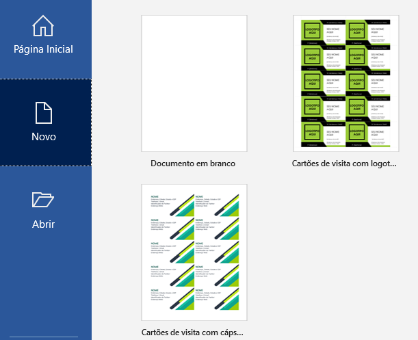 O Microsoft Word tem modelos de cartões de visitas prontos para que o usuário possa editá-los com seus dados. Dessa maneira, a ação para criar a apresentação pessoal - ou para empresas - se torna mais simples, tendo o documento pronto para impressão rapidamente no PC.