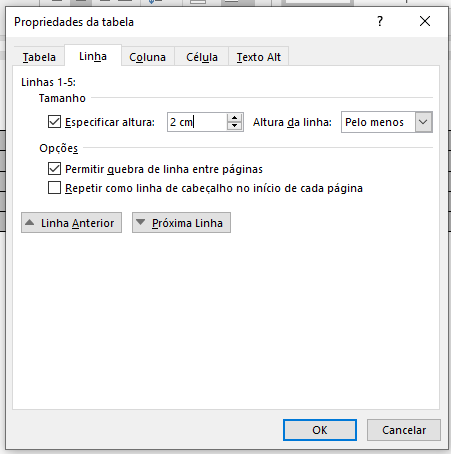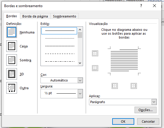 5. Na aba "Linha", defina o tamanho para "2 cm";
