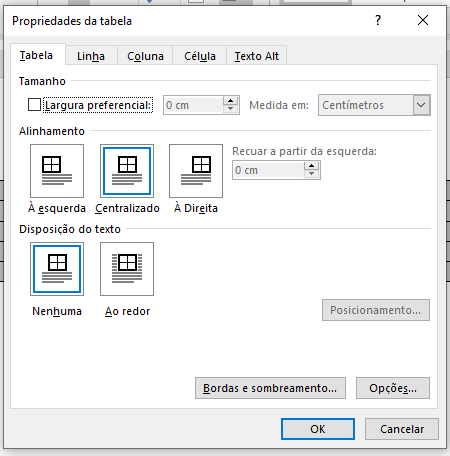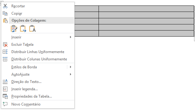 10.Clique novamente no canto superior esquerdo da tabela e acesse"Bordas e Sombreamento";