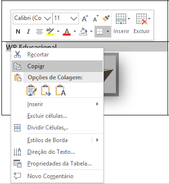 8. Selecione todo o seu cartão e clique com o botão direito do mouse. Em seguida, escolha a opção "Copiar";