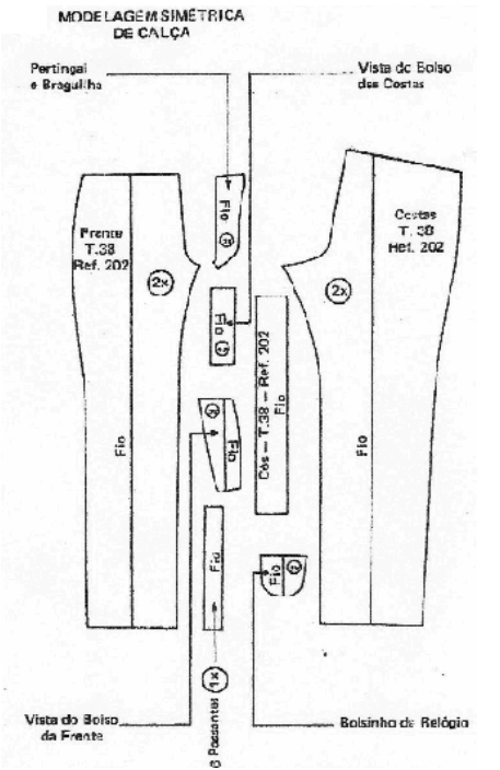 Encaixe ímpar: é aquele em que se trabalha com a metade da modelagem. Exemplo: a calça que tem dois traseiros e dois dianteiros.