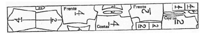 Observe como todas as partes do tamanho 1 foram riscadas por inteiro, ao passo que as do tamanho 4 foram na dobra do tecido. No caso de tecidos tubulares (como malhas) ou tecidos comuns dobrados, quando ocorrer que uma parte simétrica da modelagem só se caracterize pela união do lado esquerdo ao direito, o risco poderá ser par ou misto, pois a parte assimétrica poderá ser riscada pela metade na dobra do tecido.