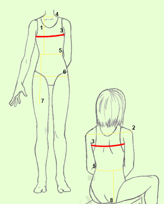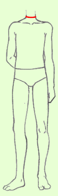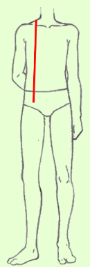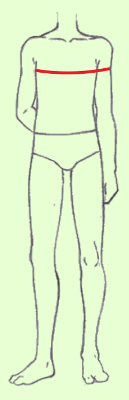 Contorne,com a fita métrica, a parte mais saliente do busto e das costas,na omoplata.