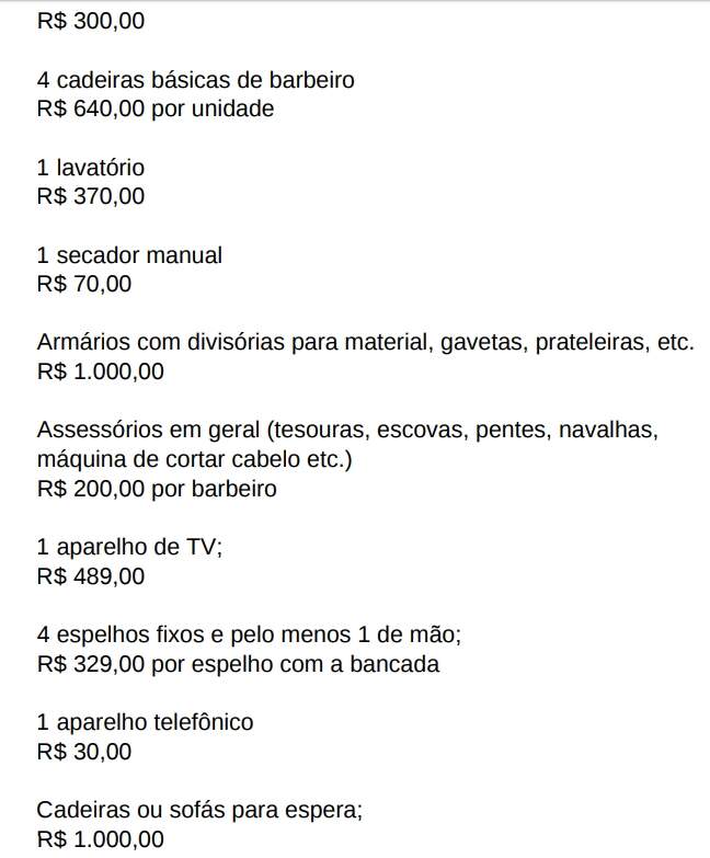 Para o perfil do salão de barbearia aqui descrito, os equipamentos essenciais são: