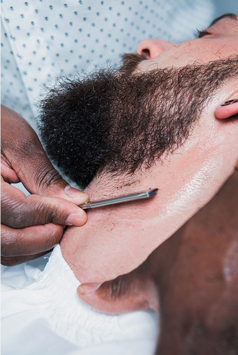 15 – Use a navalha para acertar a barba, eliminando os fios fora do seu perímetro. Dica: use esse equipamento sempre inclinado para evitar cortes.