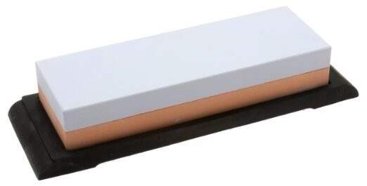 • Pedra de amolar – serve para amolar facas e instrumentos cortantes em geral. A pedra deve ficar fixa em um suporte, ou apoiada sobre um pano úmido, para que não escorregue. Molhe a pedra sempre que secar. Mantenha um mesmo ângulo (cerca de 30°), subindo e descendo, deslizando e pressionando a lâmina. Use toda a extensão da pedra e da faca para evitar que elas fiquem com o que os profissionais chamam de “barriga”. Repita a operação do outro lado da faca e finalize na chaira.