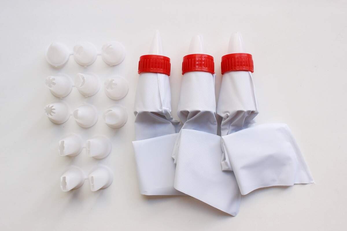 • Sacos de confeiteiro – contêm vários bicos adaptáveis para a finalização de bolos, doces e biscoitos.