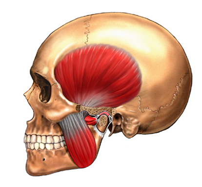 Calcula-se que a máxima pressão alcançada nesse ato seja de, aproximadamente, 240 kg, o que explica a proeza do trapezista. Mantida em elevação por esses músculos, a mandíbula é deslocada para frente pelos pterigoideos laterais e para trás por alguns fascículos (pequenos feixes de fibras musculares) dos temporais.