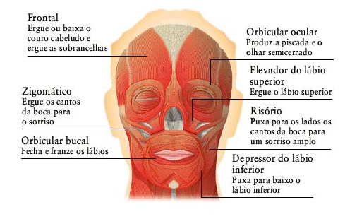 Raiva, ternura, alegria, medo, satisfação, repugnância e um sem-número de emoções podem ser exprimidas silenciosamente pela ação de vários músculos da face. São, por esse motivo, denominados músculos da mímica. Agrupam-se, sobretudo, ao redor da boca, das órbitas dos olhos e do nariz.