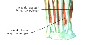 5) o extensor comum dos dedos, na parte posterior do antebraço, vai do epicôndilo aos quatro últimos dedos, dos quais, como o nome indica, determina a extensão.