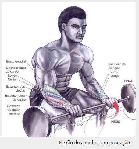 Este exercício é o ideal para quem pretende trabalhar os músculos extensores dos punhos sem o envolvimento dos músculos braquial e bíceps braquial.