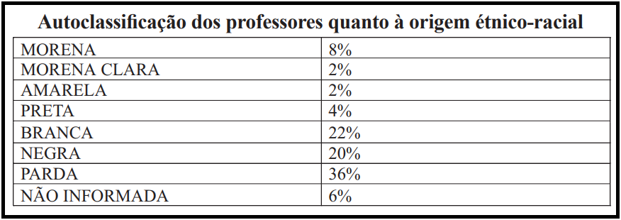 Definir a origem étnico-racial dos brasileiros não é tarefa simples. Existem muitos adjetivos para dizer o que somos e aqui tivemos uma pequena amostra desses adjetivos. Nesse sentido, Silva afirma que a percepção dos professores negros em relação à questão étnico-racial em sala de aula está intimamente associada à forma como eles lidam com o seu pertencimento étnico-racial.